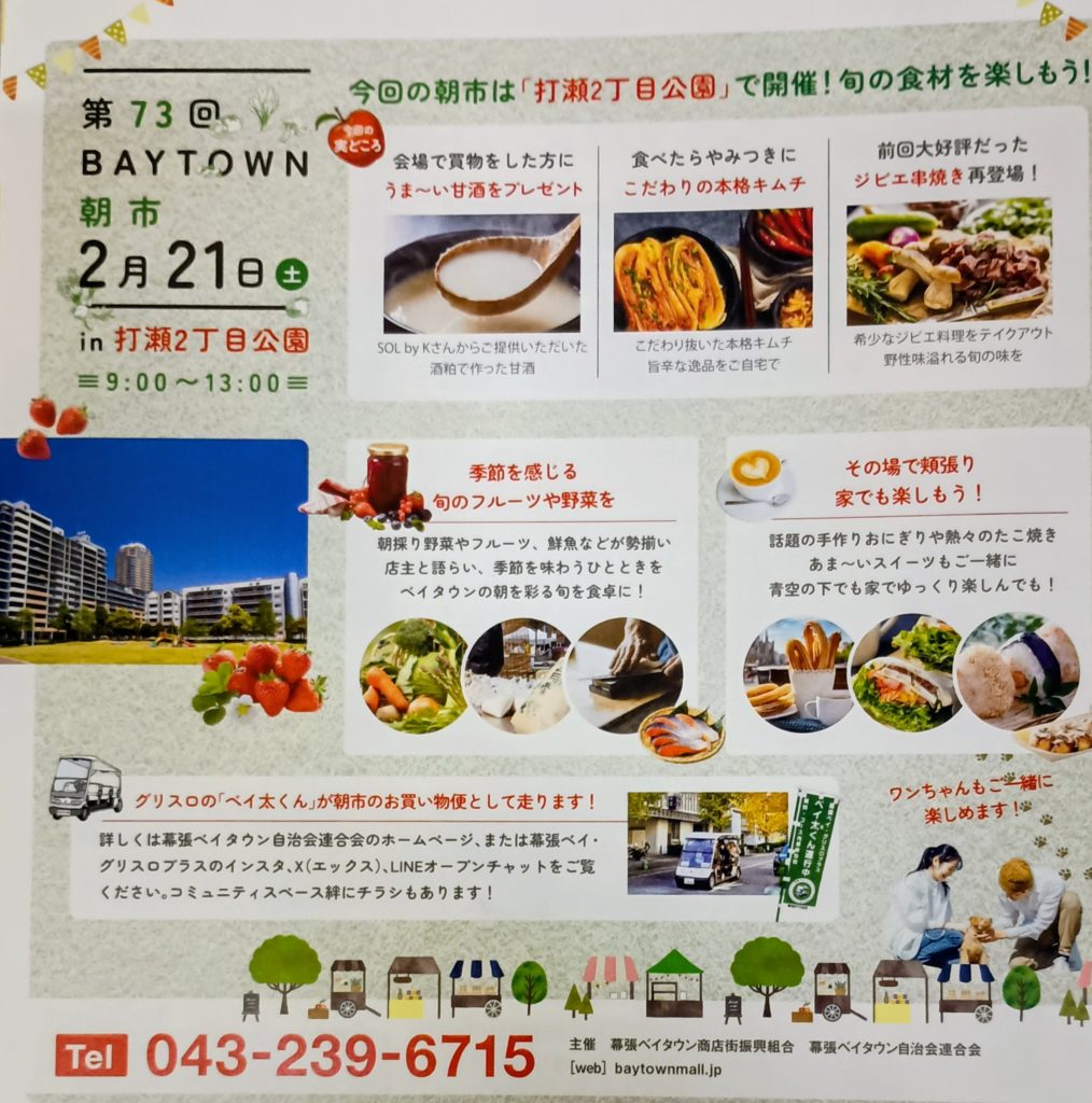 ベイタウン朝市ご来場ありがとうございました。 天候に恵まれたくさんの方に来ていただき 2025年最後の朝市を終えることができました。 次回、2026年ベイタウン朝市は2… -